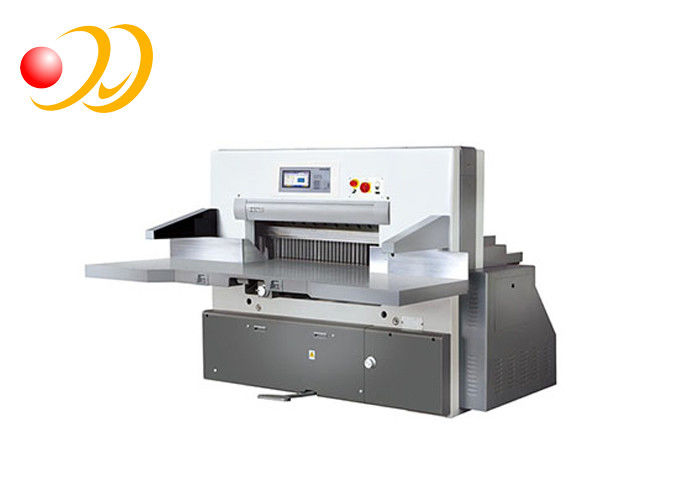 This model adopts Japan AC digit servo control system,10 inches colorful liquid crystal display screen of resolution rate is 0.01mm, has self-diagnostic function of troubles and displays the operating pattern, It has 100 program units, more than 10000 different cutting position, dynamic cutting display , running situation, dynamic follow-up. The max paper-pushing speed is 5-18m/min, it adopts stronger computer operating system. It can memorize store the storage time can be up to 300000 hours above. It has self maintenance to the operating system. Adopt Italy hydraulic components, Germany Japan and korea electric components. Taiwan ball lead screw and linear guide-rail are used. PLC controller can monitor all the electrical and mechanical section. Its key parts adopt imported bearing of low maintenance.